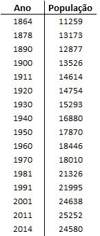 vez (em relação aos 130 anos aqui analisados) uma diminuição da população